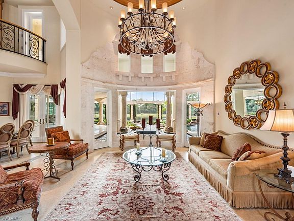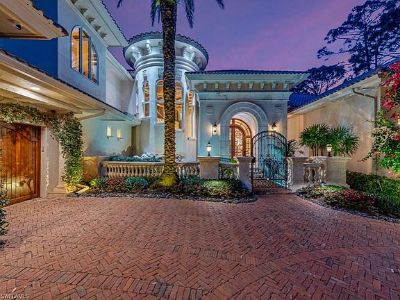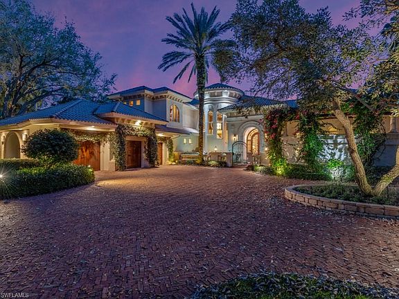Located in the beautiful Mediterra Country Club - NO WAITING! GOLF MEMBERSHIP SLOT AVAILABLE IMMEDIATELY! NEWLY RENOVATED PRIVATE BEACH CLUB—The Mediterra Beach Club offers an escape to a 10,000 sq. ft two-story private oceanfront paradise on the Gulf of Mexico. Featuring a restaurant & bar that serves members via indoor & outdoor dining, this private facility boasts a heated swimming pool, a sundeck, and cabana beach service for chairs, umbrellas & refreshments. Location, Location, Location! Beautiful home overlooking the 6th hole and sweeping lake views. Timeless architectural design is reflected with fossil stone pillars & accented arched colonnades at the entry foyer. The home has a free-flowing staircase leading to everyone's favorite focal point, the spectacular wine room. The chef-inspired kitchen offers warm maple cabinetry, accentuated by natural granite countertops and State-of-the-art Viking & SubZero appliances. The upstairs library, adjacent cocktail bar, game room, and sun-soaked balcony create a perfect retreat on the second floor. The primary suite is resplendent with a morning bar, a walk-in closet equipped with extensive built-in cabinetry, multi-level tray ceilings, and an intimate sitting area. The primary bath spares no detail in the intricate design of walnut saturnia flooring, inlaid with Italian listellos. The sweeping lanai boasts multiple outdoor dining & entertaining areas with an outdoor kitchen, fireplace, pool, and spa with numerous waterfall and fountain features. Additional features include a full home generator AquaLatch water leak detection system and a Three-car air-conditioned garage.NEW ROOF 2024.