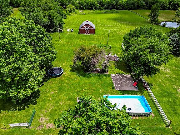 COUNTRY OASIS close to the city!! Beautiful 9.7 acres per county records fenced for your HORSES! Darling RED BARN with a loft! This BEAUTIFUL FARMHOUSE offers GLEAMING WOOD FLOORS throughout the SPACIOUS main level! Large kitchen with tons of cabinets, pantry, island and GENEROUS dining area featuring a BAY WINDOW to take in the views! Walk out from kitchen to your SPACIOUS PATIO & FIREPIT for entertaining! Great room offers BEAUTIFUL BRICK FIREPLACE, high ceilings with WOOD BEAMS and large windows for NATURAL LIGHT!! Main level office and full bath as well as laundry room. Upper level provides MASTER SUITE featuring 2 closets and full bath with shower. 3 additional bedrooms and another COMPLETELY UPDATED full bath on this level make this the PERFECT HOME for a GROWING FAMILY! LL is finished and provides storage space. Newer windows, newer sump pump, radon system, United Fiber for internet, paved main road, dual HVAC and so much more! HURRY!!