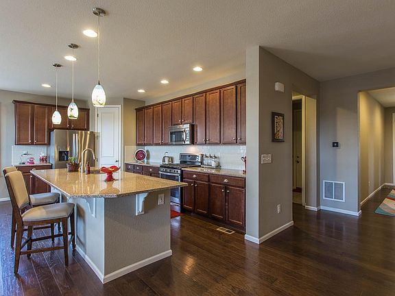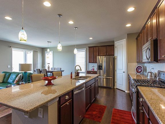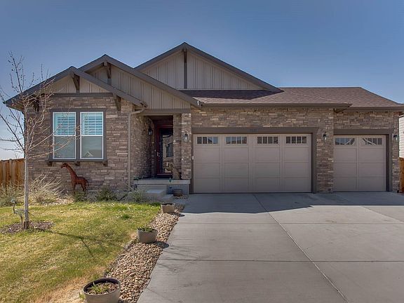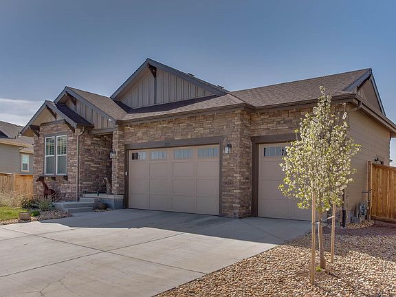 So much better than a new one! Imagine after a long week, you'll take your easy commute from work since you are close to I25, and be welcomed to your exquisite home. You'll have a kitchen a chef would adore with the 5 burner gas stove, SS appliances, walk-in pantry, 42" upper cabinets, and huge center island. Think of all the room you'll have to bake, cook dinner, do homework, and enjoy a meal together. Treat yourself to old fashioned evenings sitting on your porch enjoying each other's company and mountain views overlooking the professionally landscaped backyard, all the while sitting around your modern-day amenity of a gas fire pit. Or, have the gang over to watch the football game in the large basement rec room (big enough for a pool table and more), complete with a custom bar and cabinetry. The community includes a 5 acre park which boasts soccer fields, basketball courts, playground, pavilion, and BBQ pits.
