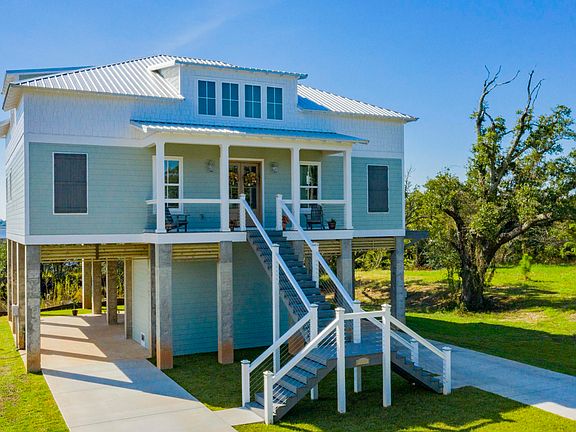 Just say WOW! Breathtaking views of the sunsets and nature on the Biloxi Bay. Gorgeous shiplap hardy plank siding. The kitchen is a chef's dream with granite throughout, white cabinets and walk-in pantry. 2 beautiful fireplaces, french doors and barn doors adorn the home. 4 car carport and workshop. Come see this spectacular home, you won't want to leave! Welcome Home. ** Seller offering 10K allowance toward bulkhead and pier!