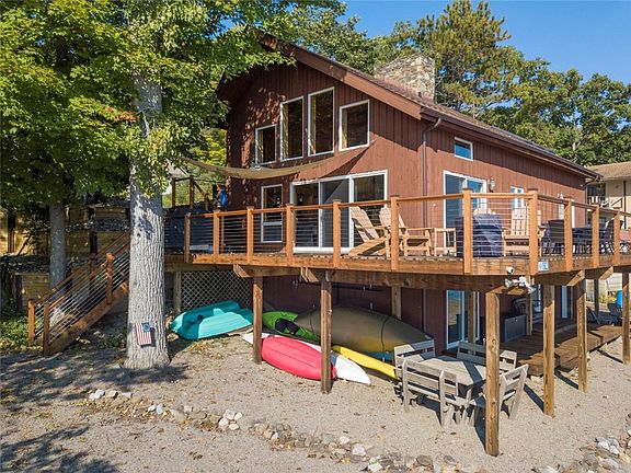 Keuka Lake-1980's rustic contemporary.....so comfortable with a large wood-burning stone fireplace to the Great Room's peak. Pine floors on main and loft area, 2 full baths, 3 bedrooms-all on independent levels, vaulted ceiling, new permanent dock, new kitchen appliances, lots of parking, 1.6 acres, 120' of all natural frontage, and a wonderful wrap-a-round deck. The views are breathtaking, and you can enjoy this home year-round. During temporary detour from Branchport please follow detour to Armstrong Rd, turn left on Armstrong and follow towards lake, turn left (north) and follow to #15822.
