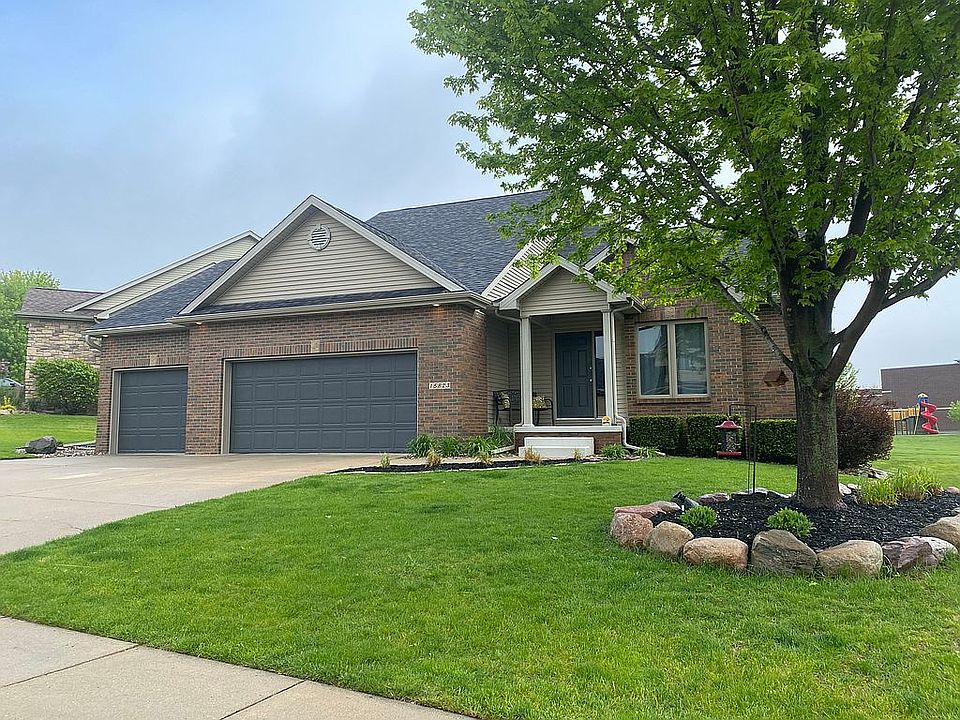 Surprising space in this 1.5 story home with walk-out basement! 2795 sq. ft. of finished living space. Inviting living room with vaulted ceiling and fireplace opens to kitchen and dining area. Newly installed granite counter tops! Large master suite and bath with double sinks, jet tub and shower on main level. Laundry conveniently placed at entry from 3 car attached garage. Upper level has another full bath and 2 spacious bedrooms both with walk-in closets. 900 sf of finished area in the lower level includes family room with fireplace, wet bar, large full bath, one bedroom, and another room with French doors that could be a bedroom, office, or playroom. The walk-out and full windows keep the lower level bright year-round. There is still plenty of additional storage space in the basement. Home backs to Walnut Hills Elementary, a walking path, and view of nearby pond.