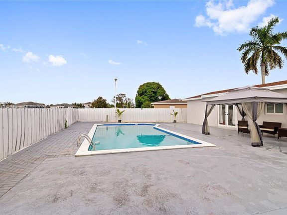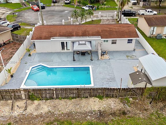 Great opportunity to own a home in a private cul-de-sac. Enjoy the summers in the pool which was recently resurfaced. The roof was replaced in 2018, Impact windows have been installed, exterior gate is automatic and security cameras provide both security and peace of mind. No neighbors in the back of the property making this a private oasis. Included in the sale is a 10x16 shed insulated with AC perfect for a variety of uses. Updated kitchen with newer appliances Tile floor all throughout, master bedroom features a walk-in closet. Side room can be used as office/storage space or it could be converted to an efficiency.