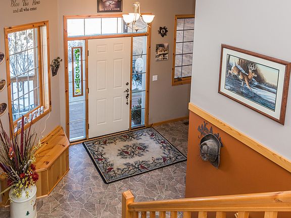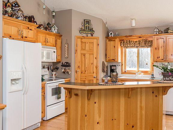 Enjoy your private retreat w/this beautifully cared for home set on 10 acres of tranquility offering endless country views & wildlife. Open kitchen w/center island for additional seating & walk-in pantry w/tons of extra storage. large bathroom w/shower & separate whirlpool tub. Spacious rooms, finished lower level & wood burning fireplace. Surrounded by mature trees, perennial & vegetable gardens, natural prairie, & huge lawn. Great for horse pasture, four-wheeling & snowmobiling! A Must See!