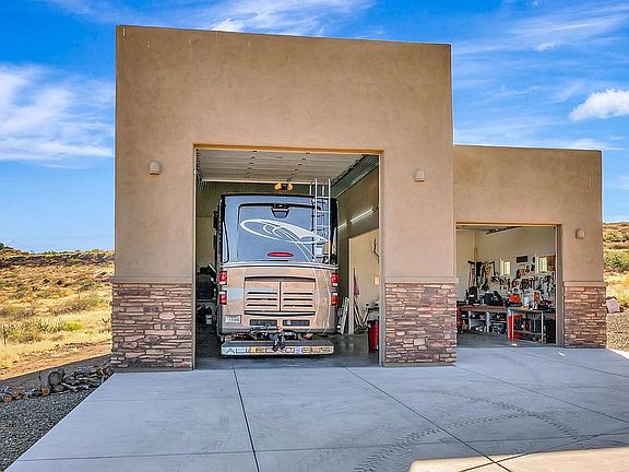 Enjoy upscale living in a beautiful community conveniently located between Prescott and Phoenix. An amazing detached RV garage - 1,440 sq feet with a 14' overhead door and 16' clearance. The garage is 50' long and 24' wide and the attached workshop is 15' X 21. R/O water so you can wash your RV with no spots! Owned solar system - 5KW.Split floor plan with raised ceilings and great room concept. Beautiful granite counters; stainless steel appliances and travertine tile flooring. Entertainers back yard with professionally installed putting green; hot tub that conveys and privacy with no neighbors behind you. Whole home has a RO water system=no mineral deposits! Garage wired to charge your car. $10,000 in custom window coverings! See documents tab on $821,000 replacement cost!