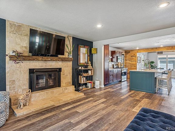 As you step inside the main home, you'll be greeted by vaulted ceilings and oversized windows that flood the home with natural light, creating an inviting and warm atmosphere throughout. The main level boasts all-new carpeting in the bedrooms and wood flooring throughout, offering a fresh feel to the entire living space. The open-concept design effortlessly connects the kitchen, family room, and dining area, creating a perfect setting for gatherings with loved ones. Cozy up during chilly evenings beside the wood-burning fireplace in the family room. From the dining area, step outside onto the back deck, where you can relish the tranquility and privacy of the fenced yard adorned with mature greenery and a charming shed to store all outdoor toys; snowboards, bikes, paddle boards, dirt bikes, etc. The primary bedroom has a large walk-in closet and newly laid carpet. The main house includes many original features along with some convenient upgrades that make modern living more comfortable. New water heater, newer roof, new out and inside paint, new flooring and new carpet, new windows, new stamped patio, and new 298 sq ft eating room addition. Large kitchen, two bedrooms, full bathroom, and ¾ bath in the primary bedroom. Over 1745 square feet in the main home and 554 sq ft in the separate living space. You are minutes from I-70, School of Mines, Red Rock Amphitheatre, downtown Golden, bike and hiking trails, tubing, kayaking, breweries, etc.