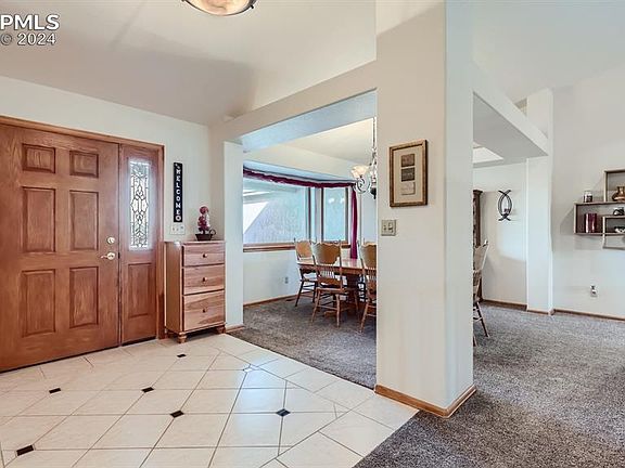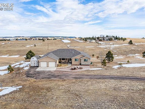 Wonderful and stately ranch home on 5.42 acres with access to the 92 acre Woodlake/County walking trails and open space. Lovely views and located at the end of a culdesac, this custom (one of a kind) ranch home features over 5400 sf with four bedrooms, five baths, dedicated office, dedicated work out space or flex room, plus walkout basement, formal dining, morning nook, spacious living room and family room, main level laundry, and roomy kitchen with lots of counterspace and cabinetry. Features of this home include the park access location, the 360 degree views of the open space and easterly Rattlesnake Bluffs plus the spaciousness of each room. It as that hard to find main level three bedrooms and office. The main level bedroom is separated from the secondaries and walks out to the covered back deck with composite decking which also accesses to the kitchen/nook area. The deck overlooks the land and has easterly views. The main level features tile flooring with inlays, newer carpet, high vaults, a wonderful five piece master bath w/ wall heater, full secondary bath, & 1/2 bath adjacent to laundry by garage. The garage features three bays with two accessed from front and the third being a side bay making it for easy pass through for all kinds of toys and equipment. The basement (10 ft ceilngs) walkout features one bedroom en-suite plus another full bath and a large family room/rec room area. Completing the basement is a woodworking shop, flex room or workout room. All perfect for entertaining and private for guests. The walkout also creates another outside living space with a concrete patio. Other amenities are Marvin windows throughout, hot water recirculation, insulated blinds, 6 panel doors, 9' garage doors, water softener, sprinkler system, 2200 gallon septic. Zoned for horses and 4-H animals, no active HOA, and nominal covenants. Outside RV parking is allowed. Come and enjoy!