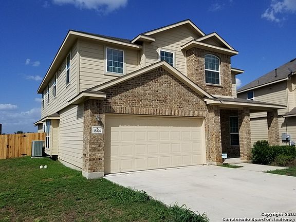 This Spacious Home sits on oversize .23 acre lot. No neighbors to the right or back of Home. Kitchen has granite countertops, gas stove Wood floors in entry, dining and living rooms,Tile in wet areas and carpet upstairs. Corner Fireplace in LR. Mstr. down w separate tub and shower and high ceilings. Very close to 1604 and IH35 interchange, the Forum, Retama Racetrack and Randolph Joint Base. Small Neighborhood with one way in and out w/no through traffic.