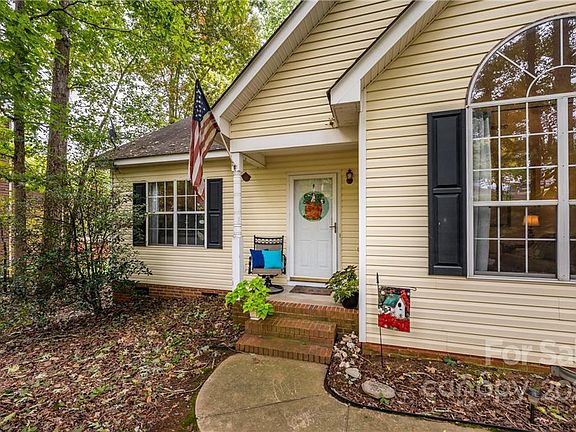 Cute starter home in Union county school district! Convenient to Charlotte and I-485. Roof new in 2015-ish, HVAC 2021, water heater 2021. Newly painted and new flooring in 2020. Split bedroom floor plan with owner's suite on one side of the home with a tray ceiling, ceiling fan, and private en suite bath with tile flooring, and tub shower combination. Two guest rooms share a hall bath. Large dining room with updated lighting and a bay window overlooking the private wooded back yard. Spacious kitchen with tons of 36" oak cabinets, ceramic tile flooring. Living room with vaulted ceiling and picture window overlooking the wooded front yard. Plenty of parking room in the driveway with turn around pad. Ample storage and closet space. Fenced back yard and relaxing deck.