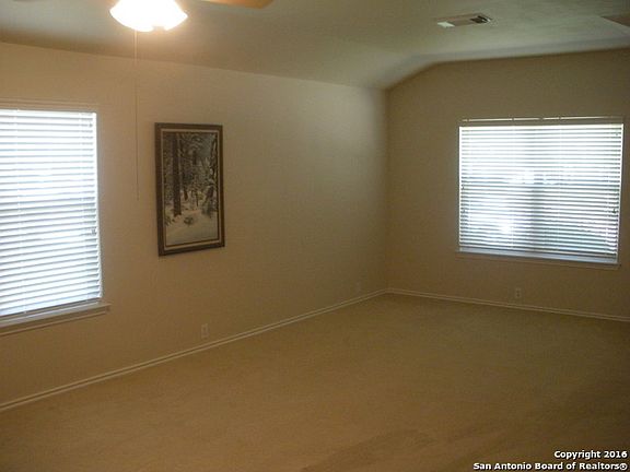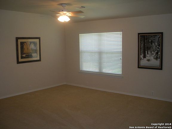 LOVELY, GENTLY-LIVED-IN (ORIGINAL OWNERS) "PULTE" SINGLE STORY W/TWO LIVING AREAS. OPEN, BRIGHT, TILED EAT-IN KITCHEN W/ISLAND OVERLOOKS THE SPACIOUS FAMILY ROOM. SPLIT BEDRM ARRANGEMENT: NICE MASTER & BATH W/DOUBLE VANITIES, OVAL TUB, SEPARATE WALK-IN SHOWER, WALK-IN CLOSET. OVERSIZED YARD W/LUSH LANDSCAPING/SHRUBS/TREES & PRIVACY. FRESHLY PAINTED INTERIOR, SOME NEW CARPET, SPRINKLER, GARAGE DOOR OPENER, CEILING FANS. PRIME LOCATION: 15 TO 30 MINUTES TO DOWNTOWN, FT SAM, AIRPORT, RANDOLPH AFB. SUPER VALUE!