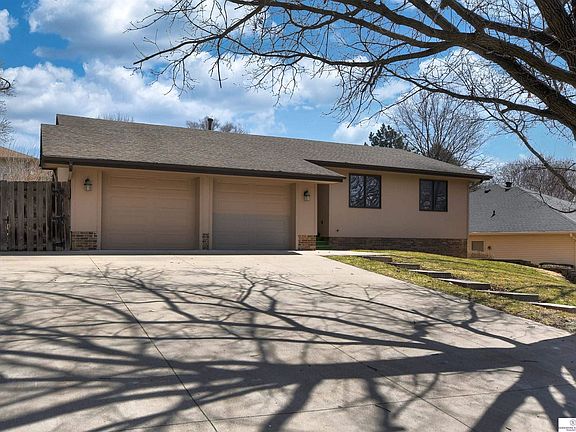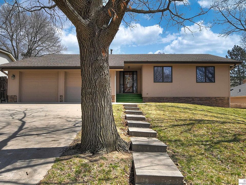 "Subject to existing home sale contingency" Location! Location! Location! On the West Omaha 4 bedroom, 3 bath large walkout Ranch home on a beautiful tree lined street. Close to all levels of schools and Dodge Expressway. All of the expensive maintenance items have been completed. Hardy board siding and windows new in 2006. External fireplace stack covered with classy custom stone. All new kitchen appliances and newer furnace & AC, new faucets, large spacious rooms throughout. Beautiful gas FP in large LR. Mostly fenced yard, gas stove in LL. Lower level could possibly be used as "Mother-In-Law area". Separate entrance. Lots of natural light, hook ups for laundry on two floors. Big closets. Great bones all though some updating may be needed for personal taste. Home sold "as is".