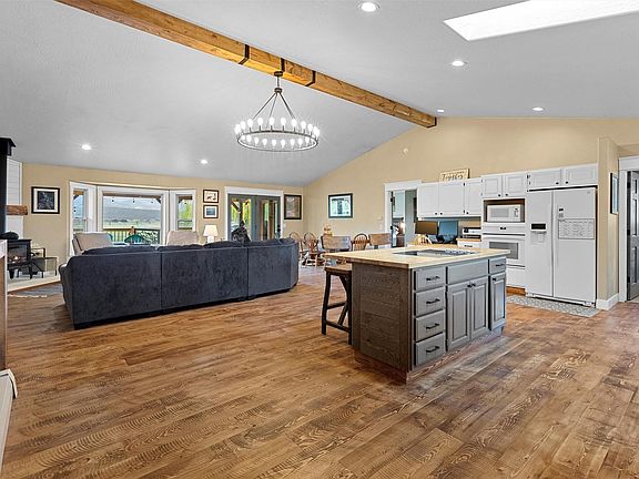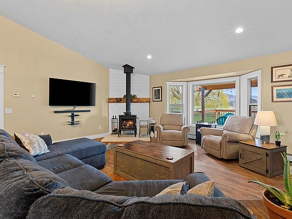 Just minutes from Frenchtown and a half hour from Missoula, sitting on just over 4 acres this quintessential Montana property is awaiting its new owners, two legged and four legged! The beautifully updated 4 bedroom, 2 bathroom home has just under 3,000 square feet and is located on 4.34 acres. You feel at home as soon as you turn into the drive and the beautifully landscaped property welcomes you. As you walk around the exterior you will find fruit trees, a chicken coop, shed, garden space and AMAZING VIEWS. A fence separates the backyard space from the additional acreage where the 4-H animals can spend their time. The desirable floor plan is ideal for entertaining with its openness and vaulted ceilings. Recent updates include gorgeous new hardwood floors, redesigned kitchen island with a butcher block surface, a rustic beam and a new wood burning stove in the living room just to name a few. On one side of the main level is the large primary suite with a sliding door to access the back deck, a walk-in closet and a large bathroom with a brand new stand alone soaking tub. On the other side of this level, there are two additional bedrooms and another large bathroom. The lower level of the home has deep windows that allow lots of light into the additional living space and large bedroom. The is amazing property is just minutes from the Frenchtown community and schools as well as the Clark Fork River. Come check it out! Call Kristin Larson (406)304-9010 or your real estate professional for a showing today.