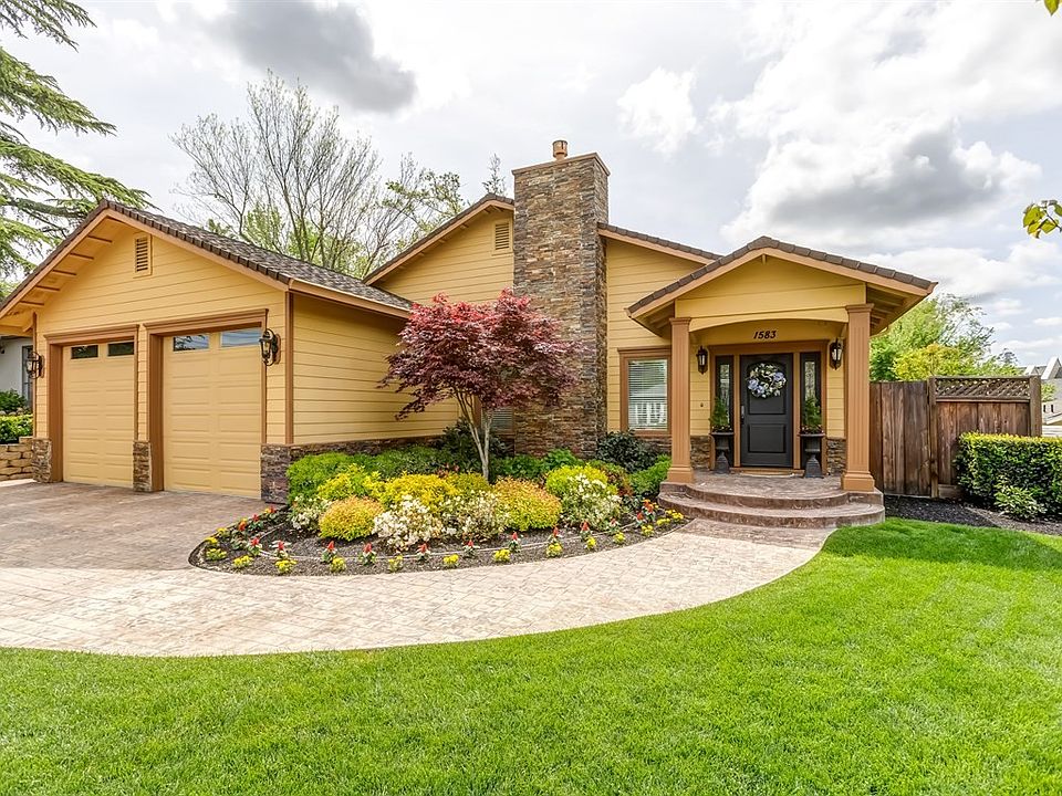 This home was extensively rebuilt and remodeled with completion in 2011 with every attention to detail. As you enter this gorgeous, meticulously maintained home, you are instantly swept away with the stylish, open floor plan and vaulted ceilings in the spacious great room/living room with gas fireplace that overlooks the elegant gourmet kitchen. The kitchen is complete with beautiful granite counters, stainless steel appliances including gas range and refrigerator, copper farm sink, wine refrigerator, custom kitchen cabinets, center-island with breakfast bar, instant hot water dispenser and kitchen pantry. Just adjacent to the kitchen you will find the spacious formal dining room with cove ceilings and French doors leading to the patio and back yard. The spacious master bedroom suite is truly a relaxing retreat with its cove ceilings, custom wallpaper beautiful gas fireplace, and French doors leading to the patio. The elegant master bath has a large shower with stone tile and a relaxing, sunken jetted tub. Just off the master bath is the large walk in closet. The back yard is an inviting retreat with the stone paver patio, outdoor speakers and pergola and the private back yard with the flagstone steps leading to the deck on the upper terrace. The 11 x 15 shed in back has natural lighting (window), electricity and drainage so could be the perfect office or additional storage. The 2 car garage is any man’s dream with the extra high garage doors, new pebble tech flooring, 220 volt wiring, set up for car charging station and an extensive cabinet system. Other amazing features to this single story home are beautiful hardwood floors and crown molding/wood details throughout, commercial grade HVAC system, lots of storage, walk in closets all bedrooms rooms, large laundry room with sink and craft area, custom window treatments, commercial grade irrigation system, treated wooden fence surrounding property, security system, ceiling fans throughout, cat 5 wiring, (speakers and wiring throughout)built-in speakers in living room/great room, bedrooms, master bath and patio, skylight, tankless water heater and motion detector perimeter lighting. If you have been looking for your dream home, this home truly has it all!