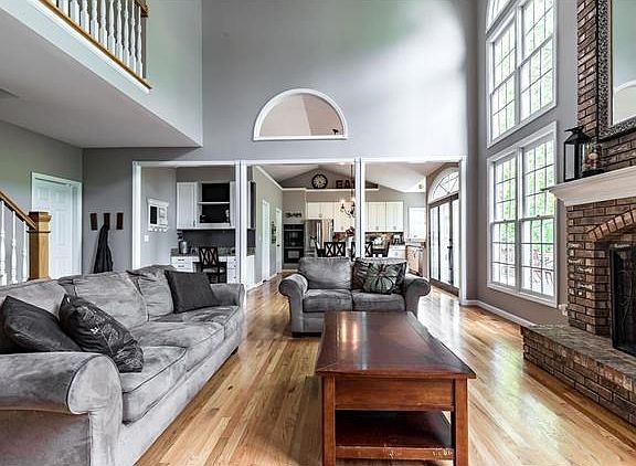 This immaculate 1.5 story home shows pride of ownership throughout. The 2 story foyer greets you with handsome wood floors. The living rm/office offers custom barn doors & built-in book shelves. Formal dining rm with plantation shutters. The beautiful 2 story great rm features wood floors & gas fireplace. The heart of the home is the gorgeous kitchen with granite countertops, center island, double ovens & walk-in pantry. The adjoining breakfast rm has triple French doors to deck. Master suite with bay window, walk-in closet & full bath with tile flooring, large tub with tile surround, walk-in shower & his & her vanities. 3 additional bedrms on upper level & 2 full baths. Finished, walk-out, lower level boasts Family rm, rec rm, exercise rm, media rm & full bath. Freshly painted throughout & tons of upgrade sure to impress. New HVAC system and so much more! Located in The Highlands enjoy all the subdivision has to offer including the pool, tennis courts & trails!