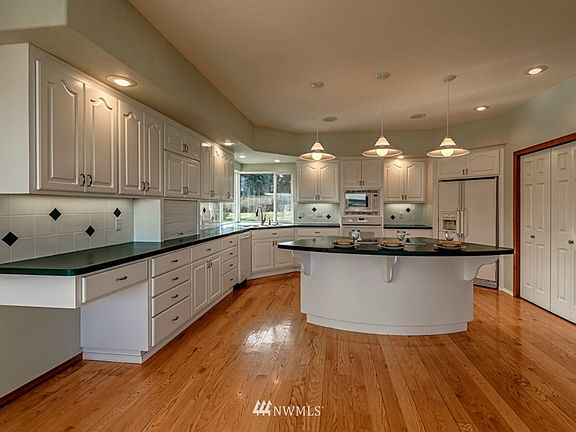 This home is magnificent. The grand views of Mt. Baker, the bay and city lights can be a part of your daily living. Wonderful fruit trees, raised garden beds, basket ball court, pond and more... 4 bedrooms, 1 ¾ baths on the main level , potential for second living area with full bath possible kitchen and separate entrance on lower level or use the great room for entertaining (includes pool table) and a large office/den/bonus room. The 3-car garage is waiting for all your toys!