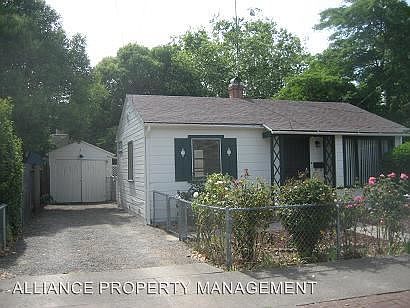 Cute One Bedroom Home with large bonus room and a very large storage unit (fits a small car) - Very cute one bedroom home on large corner lot. Home has wood floors in living room and bedroom. Kitchen comes with electric stove, kitchen nook and linoleum flooring. One full size bathroom with shower/tub combination. Indoor laundry hook-ups. Outside storage shed. Detached garage/storage. Landscaping is tenants responsibility. Pets, possible with approval. Month-to-month rental agreement. (EE) (RLNE4812998)