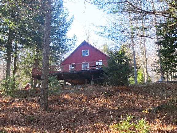 Incredibly sweet camp style property in outstanding setting. Cross the rugged steel bridge to gentle winding driveway to a handsome thinned out Pine knoll, where this remarkably well kept structure overlooks a wooded setting abutting large tracts of land suitable for hunting and outdoor recreation. Inside find 2 bedrooms, an accessible loft, kitchen, dining area, living room & woodstove, and a very large deck. Water is pumped to a large holding tank and gravity fed to the kitchen and 1/2 bath. Lights, refrigerator, & stove are all propane. This seasonal home has been enjoyed by the same families that built it and it would be one that you could truly enjoy for many more. A really special offering!
