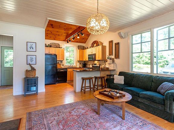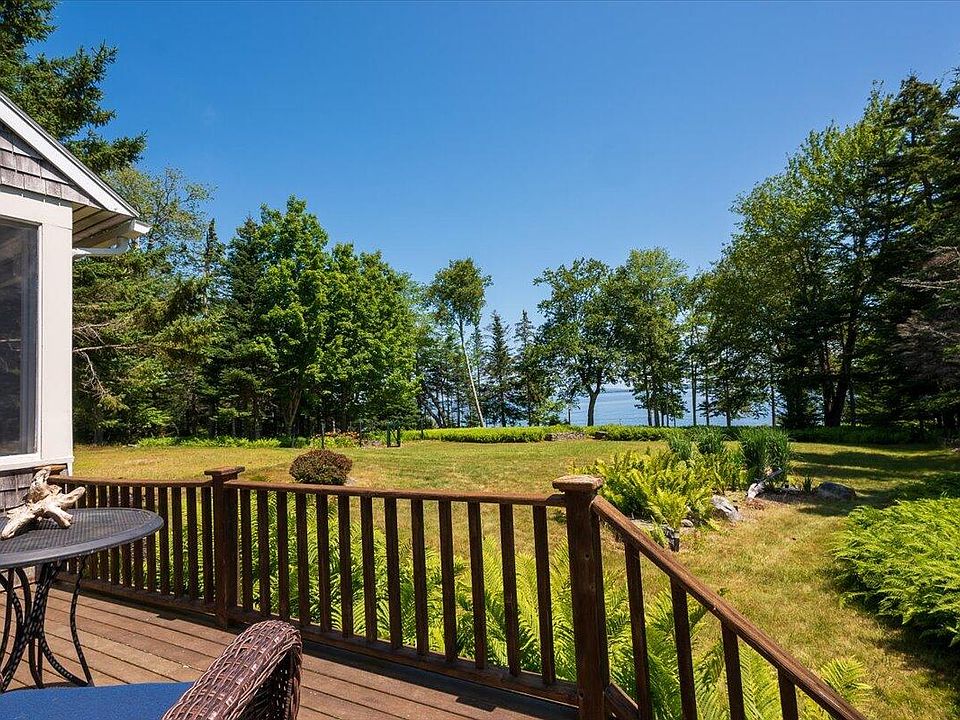 Welcome to ''Avalon,'' a distinctive seasonal cottage nestled within the Turtle Head subdivision on Islesboro's north end. Set on approximately 9.94± wooded acres with 321± feet of private waterfront on East Penobscot Bay, this exceptional property combines natural Maine beauty with refined comfort. The property offers expansive panoramic views to the East and northeast across the bay, including vistas of Castine. Thoughtfully landscaped grounds feature a cutting garden, hand-built stone walls, and a walking path through ferns to the water's edge, complete with solar lights for your evening stroll. The sandy and rocky beachfront is perfect for beach combing, kayaking, or mooring your boat and is rarely found on Islesboro. This elegantly finished cottage features an open floor plan ideal for entertaining. The kitchen, with granite countertops, transitions into a spacious living room with a wood stove set on a soapstone hearth. The living space extends to a screened-in porch and a sun-soaked open deck, both overlooking the water and a field of ferns, blurring the line between indoor and outdoor living. The first-floor bedroom offers generous space and cathedral ceilings, while a versatile loft provides an additional sleeping area or other potential uses. The full bath is thoughtfully divided into three areas: a Jacuzzi tub, a separate toilet and linen storage, and a sink with a stackable washer and dryer. For those who love fresh air, an outdoor shower and toilet are conveniently located on the back porch—complete with evening lighting. Unique amenities abound, including Bose outdoor speakers connected to an integrated in-home sound system, antique church doors in the bedroom, and a fire pit featuring an antique cauldron. A storage barn offers room for storage or workshop. With 9+ acres you can expand or build another house. Stay connected with fiberoptic broadband internet with 1 gibibyte connection speeds. Islesboro is a 20-minute ride from the mai