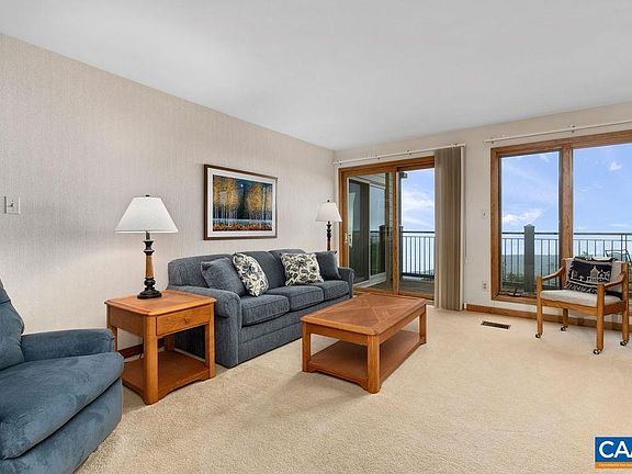 Enjoy stunning views from this one bedroom, two full bathroom villa. Resting upon the ridge, soak in long distance vistas over the Rockfish Valley. Easterly viewshed gives you beautiful sunrises in the morning and shade from the sun in the afternoon. The primary bedroom has direct access to the back deck, as well as a private full bathroom. There's a second full bathroom out in the hallway of the living area. This allows you to host guests on a sleeper sofa and offer them their own bathroom, effectively allowing this property to live much like a two bedroom. Well thought out design offering terrific flexibility! Authentic woodburning fireplace. Large living area with lots of glass. Open kitchen with plenty of cabinet and counter space. Vistas association has concrete sidewalks, paved parking, trash/dumpster service, and even provides firewood for it's owners. Vistas Condo Association dues are $1,420 per quarter. A terrific opportunity in an outstanding location.
