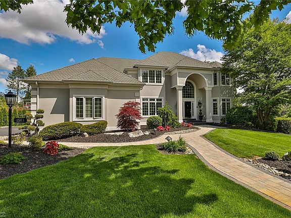This BEAUTIFUL neo-colonial contemporary showcases custom detailing & luxurious appointments in an elegant, modern interior. 5 bedrooms, 4 full baths & 2 powder rooms. Situated on .43 acres surrounded by Flowering Perennials, Lush Shrubbery, and Hearty Plant Life. The Entire Property Abounds with High-End Landscape & Magnificent Techo-Bloc Walkways. Upon entering this turnkey home, you realize the quality & abundant upgrades. Suited to today’s modern lifestyle the many amenities include a large granite kitchen w/Thermador stainless appliances, formal dining room that seats 14+, sunken living rm w/gas fireplace, a bright family rm with a wood burning fireplace, smart automation systems, lighting /music systems, energy saving features, inlaid hardwood floors, & plenty of storage space. Entertain & relax on the sprawling 800 sq. ft. deck or step out of the resort-like gym onto your magnificent patio & relax in the hot tub. 1,019 Sq Ft of added living space in lower level.