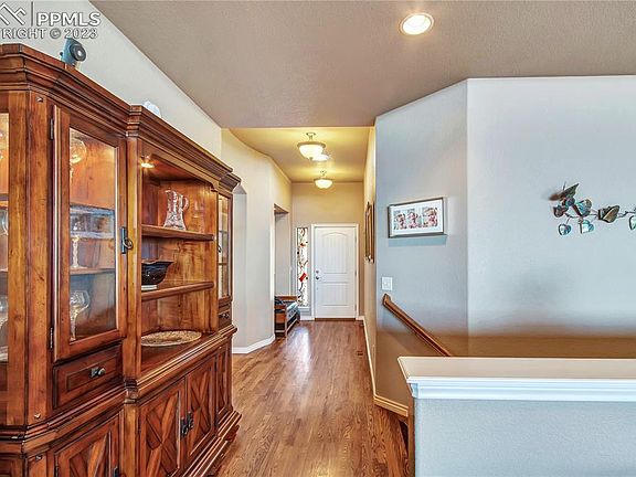 VIEWS, VIEWS, VIEWS! Beautiful, well maintained "Nokota” floor plan on walkout lot with open space behind, beside and in the front. Expanded and covered rear composite deck with iron railing. Upgraded kitchen cabinets, stainless steel appliances to include built in microwave & convection wall oven, gas cooktop w/stainless hood and refrigerator. Quartz countertops with glass stone backsplash. Hardwood floors in the entry, great room, kitchen & dining area & STAIRS! Solar system provides for a Current electric bill of $36.00 per month. Can’t beat that! There is rough in plumbing in the basement for a wet bar (behind the stairs) and another bath (behind the furnace). Upgraded carpet and faux wood blinds thruout. Stone surround with wood mantle at main level fireplace. A/C and humidifier, home run low volt wiring and intercom system. Christmas light package includes outlets at the eaves with a switch in hall entry closet. Mud room off the garage has a Boot bench w/cabinet. Metal cabinets in the garage stay. You will appreciate this home inside and out!