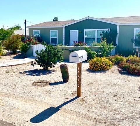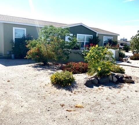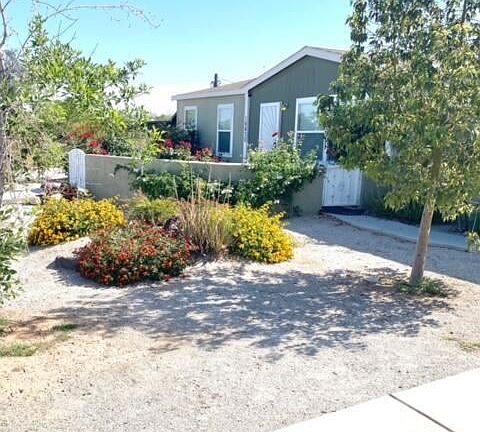 NO HOA 14,716 LOT WITH 2018 MOBILE HOME offers 3 bedrooms / 2 baths; vaulted ceilings; large kitchen with island and walk in pantry; open to spacious living room; double sink in master bath; beautiful landscaped garden entry; backyard covered patio and oasis of plants and fruit trees. Spacious laundry room, washer & dryer included. Paved driveway and RV gate.