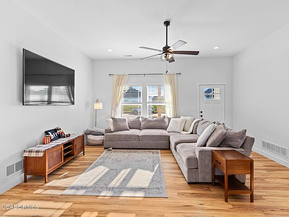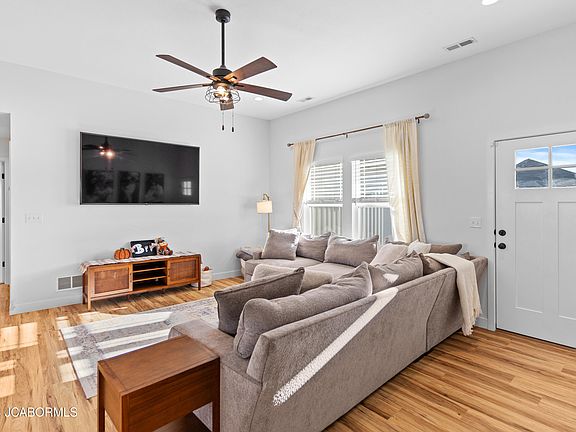 This stunning, modern 3-bedroom, 2-bath home offers an open-concept layout with a thoughtful split bedroom design for added privacy. Designer finishes and gorgeous flooring throughout add style and warmth to every room. The spacious kitchen flows seamlessly into the living area, ideal for gatherings and daily living. Step outside to enjoy the large patio with a pergola, overlooking a beautiful backyard that backs to serene common ground. Conveniently located just a short distance from the primary and elementary schools, and complete with a 2-car garage—this home perfectly balances comfort, style, and location!