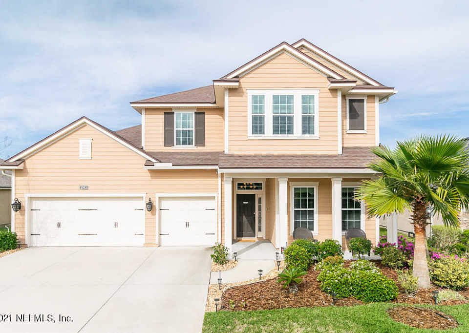 Absolutely gorgeous - not to be missed 5 bedroom 3.5 bathroom! This home features beautiful upgrades from wood look ceramic tile, a gourmet kitchen with two tone cabinets, large island, butlers pantry, separate dinning room and den. Peaceful water views extend from breakfast nook, gathering room and into the owner's suite. Owner's suite boasts an executive style bath with extended shower complete with rain shower head. A total of four upstairs bedrooms share a comfortable loft/living area. Currently the 5th bedroom is set up as a movie/media area complete with blackout curtains. Yellow Bluff Hideaway offers residents neighborhood pools, clubhouse with weight room. Playgrounds, sports fields, dog park and walking trails