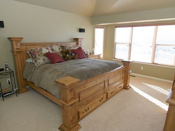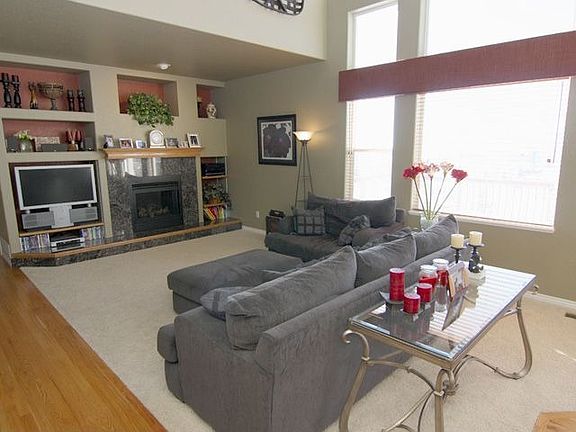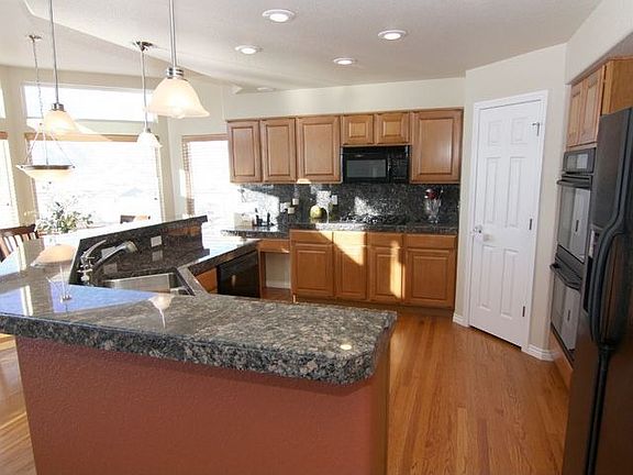 This is an amazing home in wonderful and convenient Jackson Creek. This location is extremely close to shopping, schools and parks. A two story home with over 4300 total square feet, this home has a stucco exterior, beautiful architectural details, fantastic features throughout and breath-taking views. The interior of the home offers a formal living room, a great room with tile clad gas fireplace and two story ceilings and a lower level rec room with wet bar and a gas stove/fireplace. Beautiful details and materials are prevalent throughout this home. The wet bar has hickory cabinets, a black walnut top and custom lighting. The kitchen has maple cabinets, granite counters, wood floors and upgraded black appliances. The master suite is luxurious and has a walk in closet and beautiful 5 piece master bathroom. The backyard has a composite deck and a flagstone walkway. There are breath-taking mountain and peak views from the backyard, study, great room, kitchen and master bedroom. This is a home that shows like a model! One tour is all it takes!