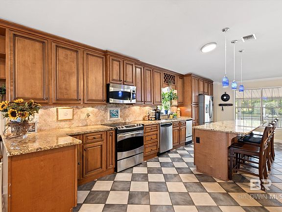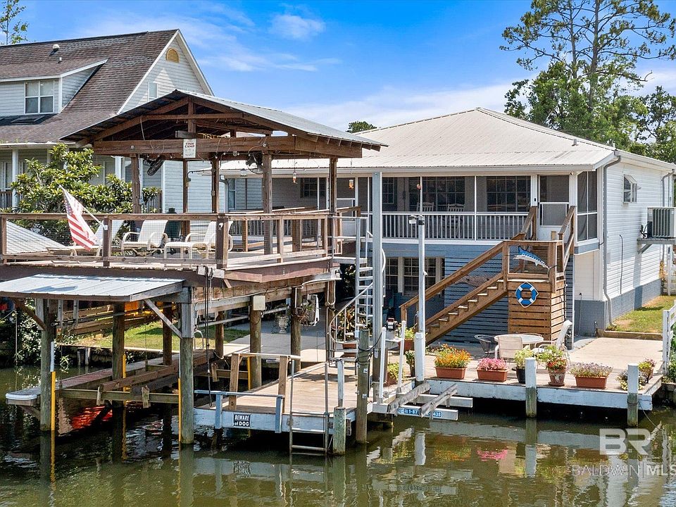 OH MY! Have you been looking for an updated home in beautiful Fish River? Well here it is! Enjoy the view the second you step out the front door onto the large screened in front porch! From there, you'll walk into a fabulous deck that has one of the best views of the river I've ever seen! Downstairs there is more decking with plenty of room for entertaining! This space was well designed for true waterfront living. Downstairs there is a large space that is now being used as a bedroom and there is a full bath also. There is also a workshop. These two spaces combined make up about 600 square feet of the 2676 listed. They are cooled by two window units and you can enter these from the inside or exterior of the home. The upstairs boasts approximately 2100 square feet with 4 bedrooms & 3 full baths. Every room is connected to a bathroom. The living room has built in bookcases, a fireplace & hardwood flooring. The kitchen features granite countertops and a large granite island/breakfast bar, stainless appliances, separate built in ice maker, plentiful cabinetry, under cabinet lighting and a wine rack! The owners have only lived here for a little over a year but recent upgrades listed in the MLS when they bought it include new decking & fencing, new carpet in bedrooms, fresh interior paint, new master walk-in shower, and redesigned pantry and laundry room. So BEAUTIFUL! You'll have access yo the gorgeous Gulf of Mexico where you can quickly reach the stunning beaches in Orange Beach & Gulf Shores AL! You'll also have a front seat to the enchanting Fish River Christmas Boat Parade or you too might decide to join in! The owners have an elevation survey they will pass on to new buyers. There is a termite bond on the property. Buyer to verify square footage of the home to their satisfaction. Please do not approach the property without an appointment. ***Home being sold as-is where-is without any sellers disclosure or repairs being done. Conventional loan or cash only!***