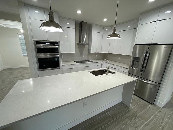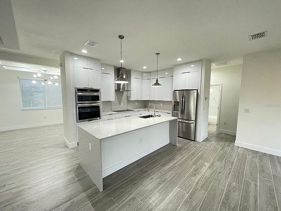 Welcome to your new spacious home, where every detail is carefully crafted for both style and practicality. As you step inside, you'll notice the elegant oversized tiles and sleek European-style cabinetry that maximize storage space. This home offers 4 bedrooms and 2.5 bathrooms, with one bedroom serving as a versatile space perfect for a nursery or office. The kitchen is a standout feature, boasting luxurious quartz countertops, a matching full quartz backsplash, and a stunning waterfall island that transforms meal prep into a delightful experience. The consistent design flow extends to the bathrooms, where countertops mirror those in the kitchen, ensuring a cohesive look throughout. Equipped with convenient amenities like an oven and microwave combo, cooktop, and hood, cooking is a breeze. With plenty of space and ample storage, keeping culinary essentials organized is effortless. Designed for gatherings and memorable meals, this kitchen truly is the heart of the home. Don't miss the chance to experience modern living at its finest. Schedule a showing today and discover the magic of this exquisite home for yourself.