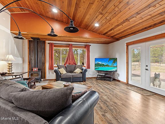 MOTIVATED SELLER! Bring your finishing touches, home is situated on a private corner lot, this 10 acre property offers the best of everything-grassy landscapes, trails, trees, pond & plenty of open sunshine. Open kitchen w/ breakfast bar, beautiful tongue & groove vaulted ceilings & efficient wood stove. Great layout w/ 3 bdrms, 2 full bath, large laundry room, oversized 2-car attached garage, & covered front porch. Store all your toys in the insulated 36 x 36 shop! With Lake Coeur d'Alene boat launches just 2 miles away. The ideal location, perfectly central to Spokane & downtown CDA and under 25 minutes either way. Included in Sale of Home: Kubota B24, John Deer riding mower, laundry cabinets, washer, dryer, champion generator and murphy bed (if buyers are inclined to keep)