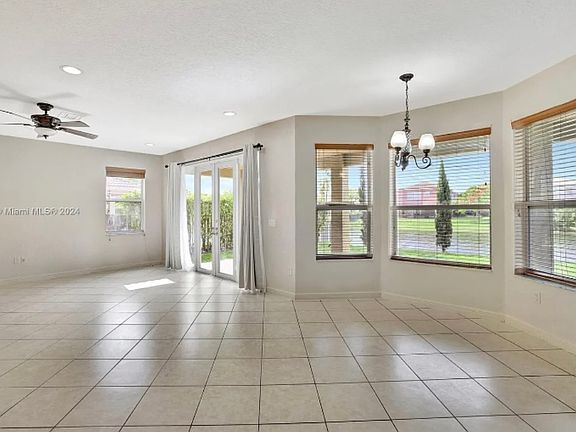Experience the luxury of this stunning 5bedroom home in the prestigious Riviera Isles neighborhood This resort style community offers a million$ clubhouse and incredible amenities. The home features a very spacious 3car garage and is bathed in amazing natural light, thanks to its volume ceilings and oversized windows. The kitchen is a chef's dream with its beautiful oversized design. The master bathroom is designed for relaxation with a shower and a resort style woman tub. For peace and mind home includes upgraded accordion hurricane shutters. Outside, envision building your dream pool overlooking the serene lake in the expansive backyard. Conveniently offers easy access to shopping, restaurants,major highways. One year minimum lease