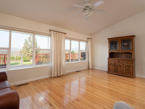 BLUE SKIES + ENORMOUS VIEWS evoke a casual, Western spirit! Kick off your boots. You'll feel right at home, in this 1927sf one-level, three bedroom/two bath (+ office) ranch-style home built in 2004. Vaulted ceilings and gorgeous hardwood flooring are featured in the formal living and family rooms, while bedrooms and office have wall-to-wall carpet. The primary suite and main rooms all overlook views of the canyon, mountain views from the front yard. The kitchen is fresh and bright, also vaulted and open to a breakfast nook and family room with a cozy wood-burning stove. This flat, usable, 5-acre parcel is partially fenced and offers unobstructed sunrises over the back yard and sunsets in front. Immaculately landscaped, with a large shop, plus two nice 12x12 outbuildings. Conveniently located, just off the beaten path in Crooked River Ranch (Phase 1), there is recreation galore in literally every direction. Golf, rivers, equestrian activities, pickleball, climbing - you name it!
