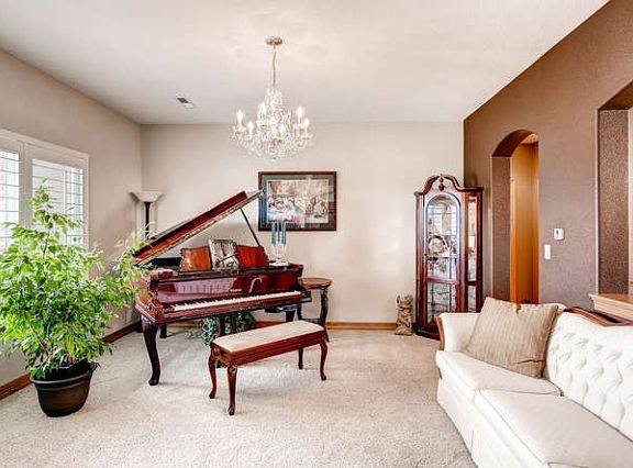 Sophisticated custom Saddle Brook ranch is the ultimate package! Serene Arvada setting on a one-acre, professionally landscaped corner lot with fantastic mountain views. Top-of-the-line upgrades throughout—pride of ownership shines bright! Exceptional open floor plan is an entertainer’s paradise. The stunning gourmet kitchen showcases elegant quartz countertops, stainless steel appliances, a cook-top stove with attractive hood vent, plentiful hickory cabinets, custom tile floors, backsplash and an entertaining island with stylish pendant lighting and instant hot water. Open to the great room, the large eating space and kitchen are flanked by picture windows and graced with stunning mountain vistas. The captivating 19’ by 24’ great room is accentuated by an inviting gas fireplace with mantle, 12-foot ceiling and artistic niche. The versatile formal dining room greets all guests upon entry, and opens to the convenient study with French doors. A true retreat, the private main floor master features a luxurious five-piece bath with custom tile, a jetted soaking tub, six shower heads and His and Hers walk-in closets. The finished walk-out basement is astounding! This sunny lower level is a comfortable, attractive space offering eight-foot ceilings, great views of the mountains, a wide open recreation room, plentiful storage and four oversized bedrooms. Each bedroom has its own walk-in closets and ensuite bath! This marvelous home also features a brand new roof, new modern lighting, fresh paint, plantation shutters, top down/bottom up shades and a highly energy efficient in-floor radiant heating system. There is an optional main floor laundry as well! Enjoy elegant outdoor entertaining and outstanding mountain vistas on the partially covered deck or the stamped concrete patio. Utilize 1,089 square feet in the finished three-car garage for all of the toys! See it now! This is a truly extraordinary home!