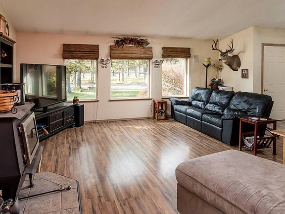 Amazing HORSE PROPERTY with 2 big riding arenas/ horse corral's. Large 36X36 barn/shop with horse stalls, hay storage and tack room. All fencing and irrigation sprinklers includes. Underground sprinkler system on plush lawn. Separate wood shed and addition man cave, art studio or sewing studio insulated and ready to make your own space. Home includes many upgrades with new granite bathroom & kitchen. woodstove, brand new wood flooring, 2 water heaters & hot tub. Corner lot with 2 separate gates. Shop area