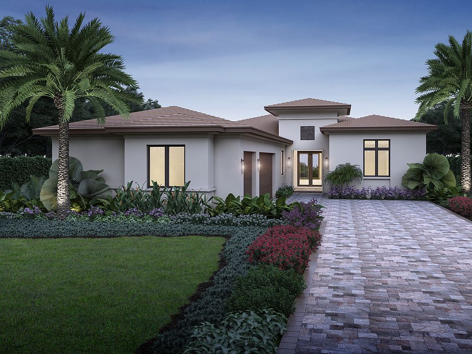 The Cameron is one of several new open-concept home choices ranging from 3,170 to 3,844 square feet under air available in Lucarno, a neighborhood that presents maintenance-free single-family luxury villas. The new contemporary floor plans feature spacious great rooms, island kitchens and dining areas, a study or formal dining room, optional wet bars, three or four bedrooms, three or four bathrooms, lofts, spacious walk-in closets and bathrooms in the master suites, and three-car garages. Each provides a choice of two new contemporary elevations.*Images are of a previous Cameron model and may include luxury features or finishes.