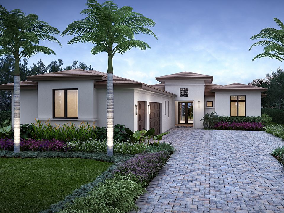 The Montego is one of several new open-concept home choices ranging from 3,170 to 3,844 square feet under air available in Lucarno, a neighborhood that presents maintenance-free single-family luxury villas. The new contemporary floor plans feature spacious great rooms, island kitchens and dining areas, a study or formal dining room, optional wet bars, three or four bedrooms, three or four bathrooms, lofts, spacious walk-in closets and bathrooms in the master suites, and three-car garages. Each provides a choice of two new contemporary elevations.