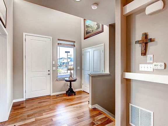 Located in one of only a few Candelas communities that allows privacy fencing and short distance to the pool, fitness center, parksand trailheads. Roof top solar panels reduce energy costs and are prepaid for the next 20 years. Security system with camera. Hunter Douglas 2" easy glide wood blinds. This Candelas, solar-friendly, neighborhood includes front landscaping maintenance and snow removal of front walks and alleys. Community garden, movies in the park, concerts in the park, fitness classes, cycling groups, book clubs and wine tasting clubs, are just a few examples of the many community social functions in the town center. Welcome home!
