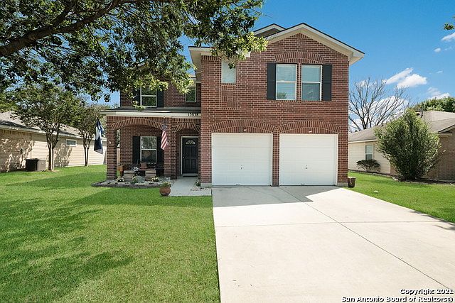 Classic red brick beauty in Retama Ridge! You will love the layout & open floor plan of this home. Every space has been thoughtfully used. The kitchen offers plenty of counter space & storage, opens into a breakfast area & main living space. Cozy up to the gas fireplace in the winter & let the sun shine in all summer long from the large windows! Master bedrooms is on the main level with great natural light & large ensuite with double vanity & soaking tub. Upstairs there is a sizable landing space that is perfect for a secondary living space or workstation. All secondary bedrooms are spacious & guest bathroom offers another double vanity & separated wet room. You will love spending time in the large backyard that has been lovingly cared for. The location cannot be beat with fast access to IH-35 & 1604. Close to shopping, entertainment, & Randolph AFB.