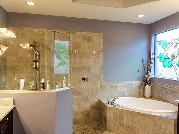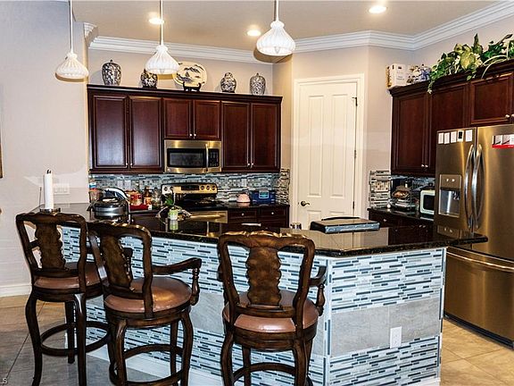 Wonderful 3 bedroom/3 bathroom split home with a large den is ready for a new family. Custom tile floor throughout the living area and dark bamboo in the den. The kitchen and living area are open and inclusive. The sliding glass doors open from the living area out to the patio and pool. The large patio has room for a hot tub, entertaining, or simply enjoying the evenings with family and friends. The master living area is complete with coffered ceiling and crown molding, while the master bathroom has a walk in shower and separate spa tub. This wonderful gated community has low HOA fees, is minutes from outstanding restaurants, grocery stores, and just a few miles from the beach. I-75 is easily accessed from Bonita Beach Road or Immokalee Rd. This is a prime location and an excellent home that you don't want to miss!