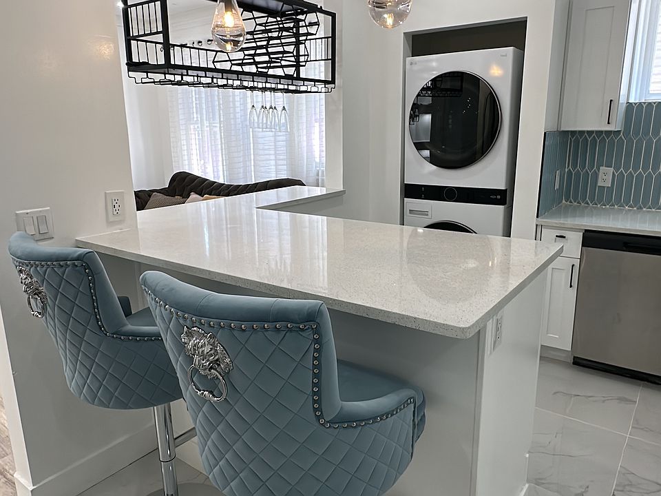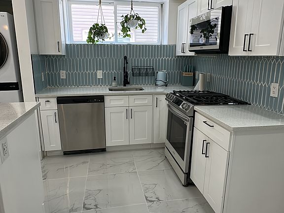 Welcome to your next home! This beautifully renovated 2-bedroom, 2-bathroom apartment is located in the heart of Hillside, NJ, offering a perfect balance of modern comfort and convenience. Step into a bright, open-concept kitchen featuring elegant white shaker cabinets, sleek quartz countertops, stainless steel appliances, and a striking custom tile backsplash. The kitchen also includes a built-in washer/dryer for maximum ease and efficiency. Enjoy polished porcelain tile floors throughout, adding a luxurious feel with easy maintenance. The spacious layout is complemented by large windows that flood the space with natural light, along with thoughtful finishes like matte black hardware and stylish hanging plants in the kitchen bay window. Each bedroom offers generous space and closet storage, while the two full bathrooms are updated with modern fixtures and finishes. Landlord pays for: Heat hot water, Cold water and Sewer Tenant pays for: Gas and Electricity