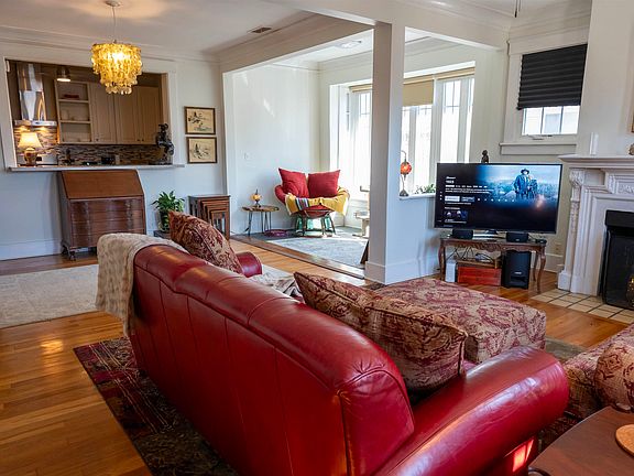 Spacious, updated & light filled upstairs condo in the heart of Central Gardens! Classic architecture inside and out! 9' smooth ceilings, original nail down hardwood. Nice molding & built-ins. Wood burning fireplace! Replacement windows throughout, some casements with screens. Kitchen and bath updated. All appliances remain. Stove 3 yrs, washer/dryer 2 yrs, new dishwasher. HVAC & ductwork 5 yrs with nest thermostat. Roof 9 yrs. Wired security system with 6 cameras. 1 assigned parking space with an EV charger. Low HOA of $200. Neat, clean and quiet unit with a great walk score!