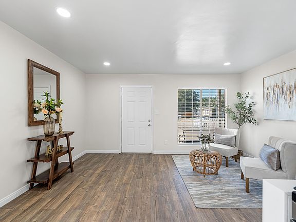 Welcome to your dream starter home! This home has been tastefully remodeled featuring luxurious wood plank flooring, New Neutral paint, upgraded light fixtures and windows throughout. Kitchen finished with quartz countertops, mosaic backsplash and stainless-steel appliances. The updated bathroom offers modern finishes and style. Situated on a large lot, this home provides plenty of outdoor space for relaxation and entertainment. A perfect blend of elegance and comfort, this home is move-in ready and waiting for you.