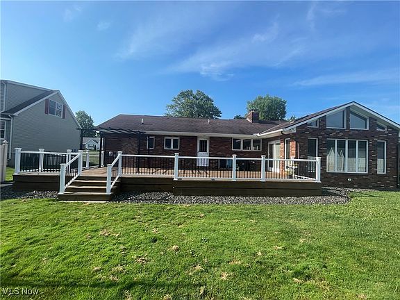 Beautiful Brick Ranch Situated on two lots with two car garage and detached garage sitting 0.74 acres , in Ashtabula , Saybrook township. There is Three bedrooms and two half baths on main floor . A updated Kitchen with granite countertops, Plenty of cupboard space with New engineering flooring. There is a spacious deck in back of house new decking with vinyl sides and black rod iron spindles. The Playground that is situated in the backyard stays with property. This property has a Full Basement with fireplace, a beautiful bar that stays to entertain or have family gatherings while sitting by the Fireplace. This property has a lot of great features that you can't pass up. Schedule a showing today! Home Warranty is included with sale of the property!