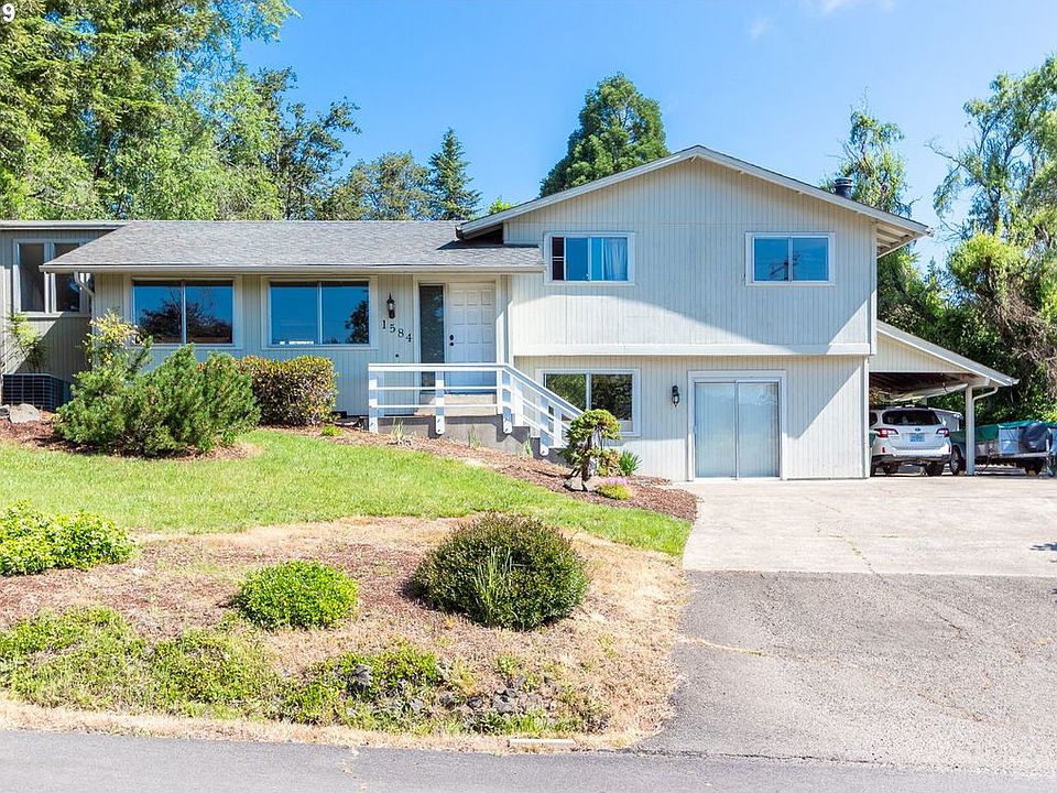 Private setting, high ceilings, large windows, open plan. Neutral colors, kitchen with eat bar, double ovens, microwave. Dining has slider to deck and nice, private backyard. Formal dining great as office/den. Maser suite and 2 bedrooms up. Daylight basement has utility and slider to front yard and carport. Wood stove has been removed. Walk to Hucrest School, RV parking.