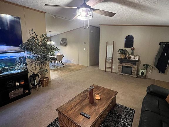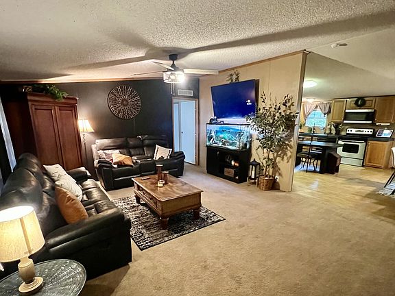 This home qualifies for 100% USDA financing for qualified buyers. Peace and Privacy in this Large 2,356 SQ FT Home. 4 Bedrooms 2 Baths all on one level. Covered Front Porch! Brand New Roof with 25 Year Labor and Materials Warranty!! Open Concept Living Room leading to Dining/ Kitchen Combo. Den Area with Fireplace and Wet Bar! Nice size Primary Bedroom with huge walk in closet and bathroom. Less than 10 minutes from local grocery store and Food.