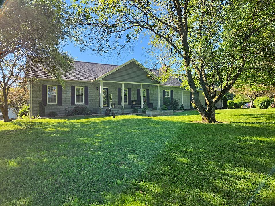 Beautiful 1.5 story brick home on 3.74 acres located in the Licking Valley area. This home has 4 bedrooms, 2.5 bathrooms, family room with fireplace (gas logs), dining room, living room, primary bedroom and bathroom on main level. Full finished walkout lower level with new epoxy floor throughout. This home has many updates: roof, gutters, windows, septic system, bathrooms, flooring, hot water tank, water softener and painted inside and out. Also, some new interior and exterior doors.