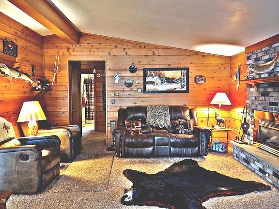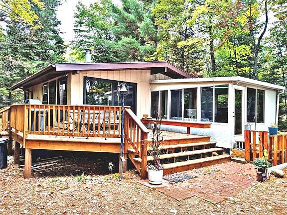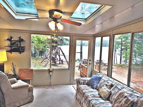 BASS LAKE HOME - This 3BR, 2BA home sits on a sandy shoreline of Bass Lake, a private 266-acre lake with great fishing including musky, largemouth and walleye. The interior is finished in tongue-and-groove knotty pine for that cozy Up North feeling, whether it is a full-time home or vacation retreat. The living room has vaulted ceilings and gas fireplace with great views of the lake; or sit on the four-season sunporch with skylights as you watch the great outdoors. Kitchen has knotty pine cabinets and large windows, and leads out to a newly built deck for grilling and enjoying a few drinks with friends. Two bedrooms & full bath upstairs; a finished downstairs sports a large bunk-style bedroom and full bath to house all those guests who want to come stay with you! There is a utility room and workshop. A detached 3-car garage gives room to store all the toys and boat. Close enough to Eagle River to be convenient, yet close to thousand of acres of public lands for trails and recreation.