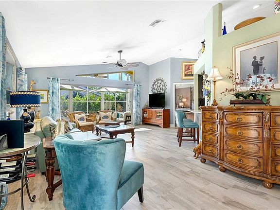 Amazing Opportunity - only home listed for sale in the favored community of Weybridge, a small enclave of only 53 homes in Imperial Golf Estates. Lots of natural light welcomes you as you enter this beautifully updated home that boasts extensive updates allowing the buyer to just move in and enjoy. Improvements include new flooring, new baths, new counter tops, backs splash and appliances in the kitchen, custom light fixtures and fans, newer hot water heater, roof and impact windows and front door offering you peace of mind. Located on lushly landscaped, private corner lot in the inner circle. Relax on the enclosed lanai or enjoy views from the front bay window. Residents enjoy single family, maintenance free living where your lawn care, roof replacement & repair, repainting of exterior & basic cable are all handled by the condo association. Exterior painting to occur in January at no cost to owner! Amenities include clubhouse, community pool, exercise room. Membership to Imperial Golf Club is optional. Prime location, close to shopping and dining at Mercato and minutes from Naples pristine beaches. Start enjoying paradise today!